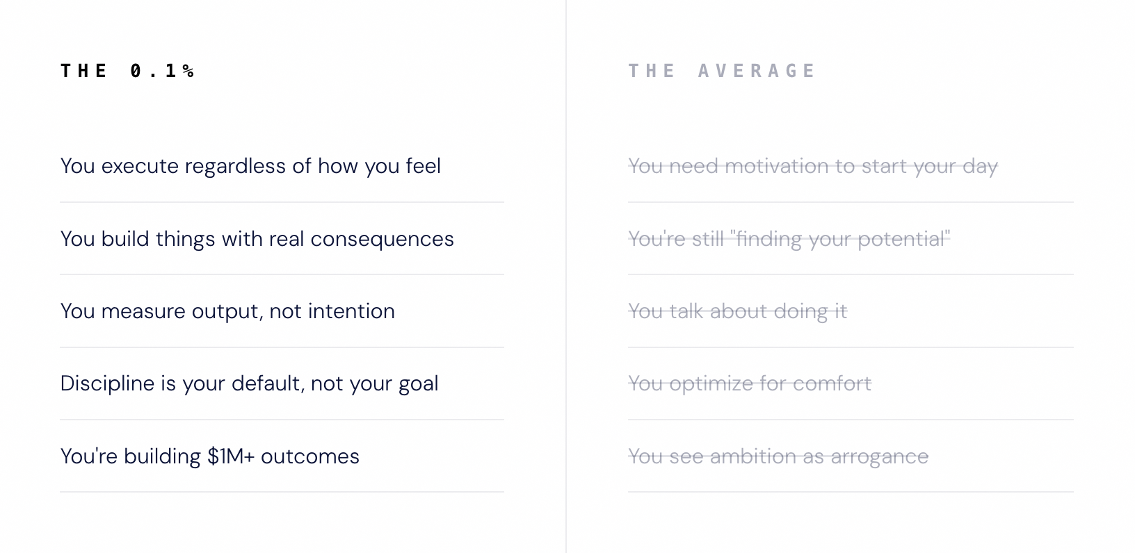 The framework used by the 0,1% who were never destined to be average.